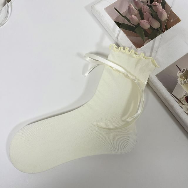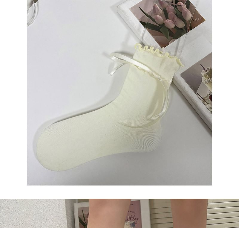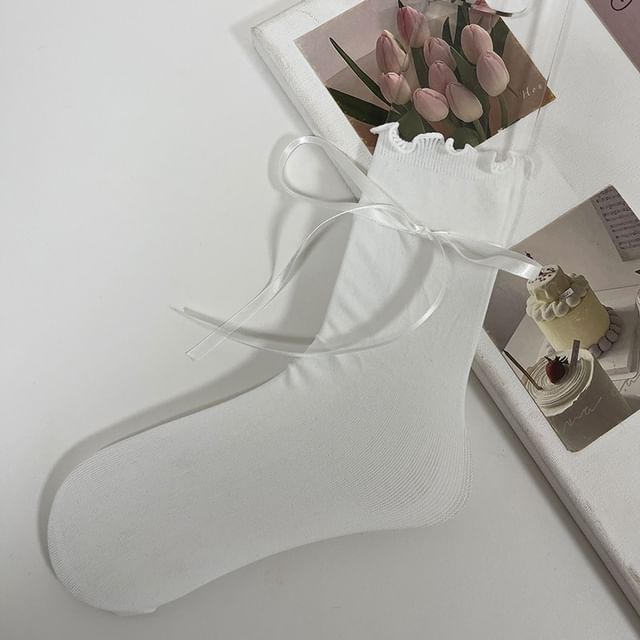 Plain Bow Lettuce Edge Socks