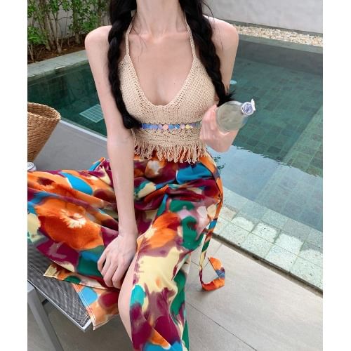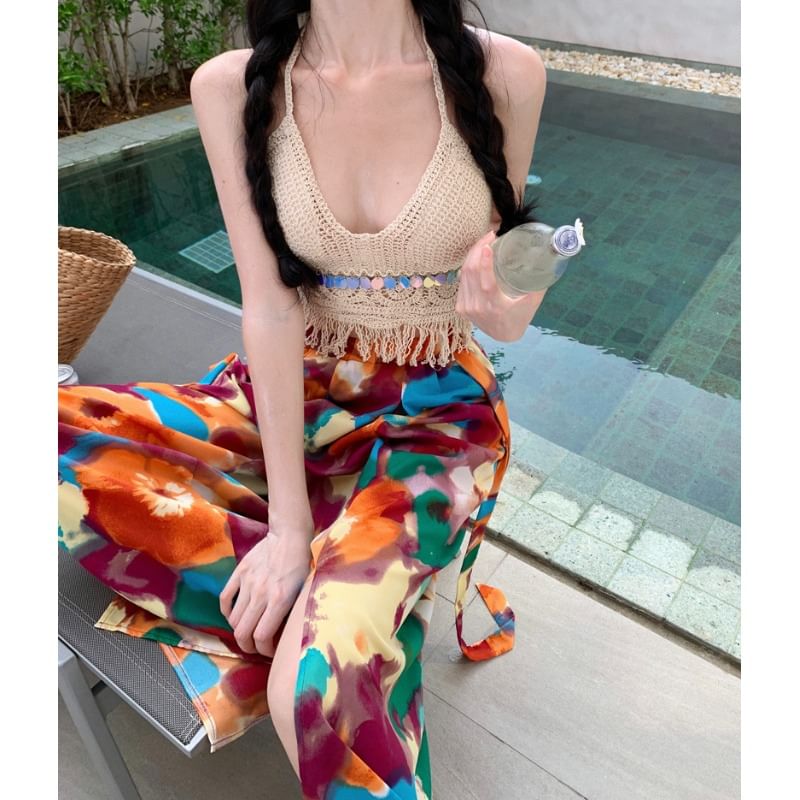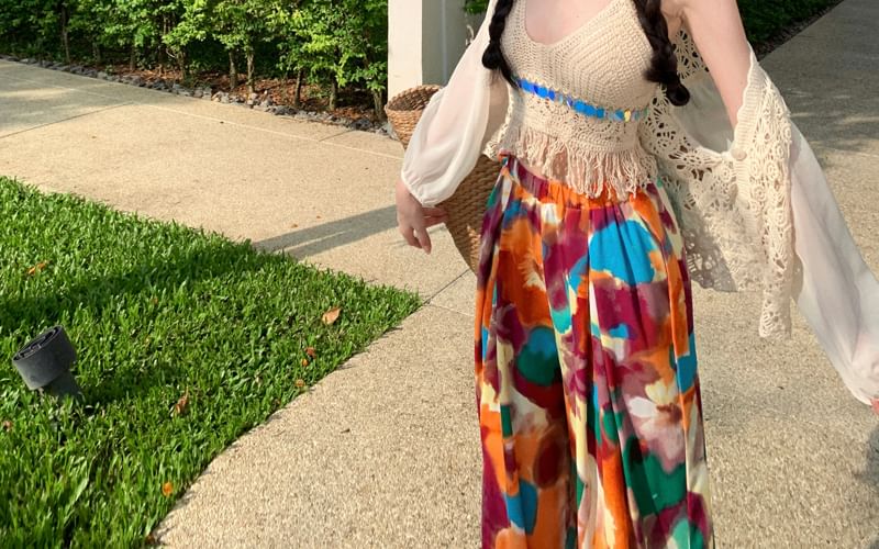 Print Skirt Embroidery Set Tassel Shirt Flower