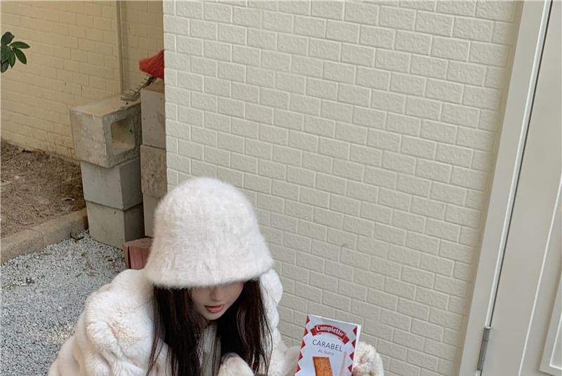 Plain Fluffy Open Front Jacket / Mid Rise Plain Wide Leg Pants
