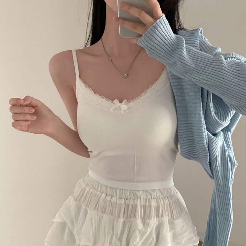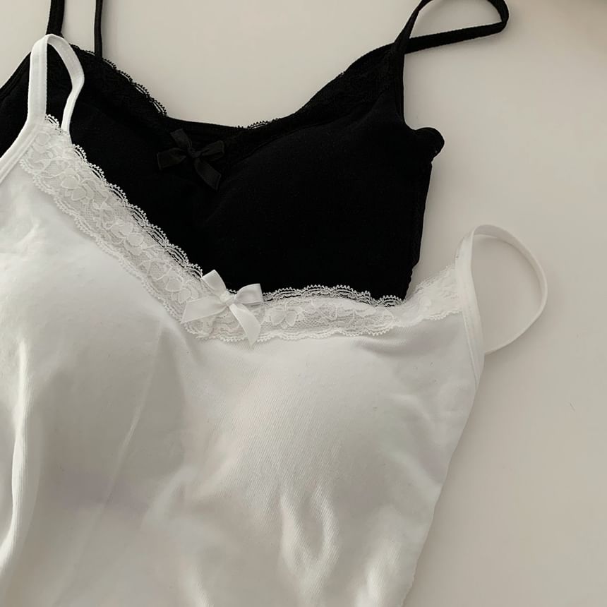 Plain Lace Trim Bow Camisole Top