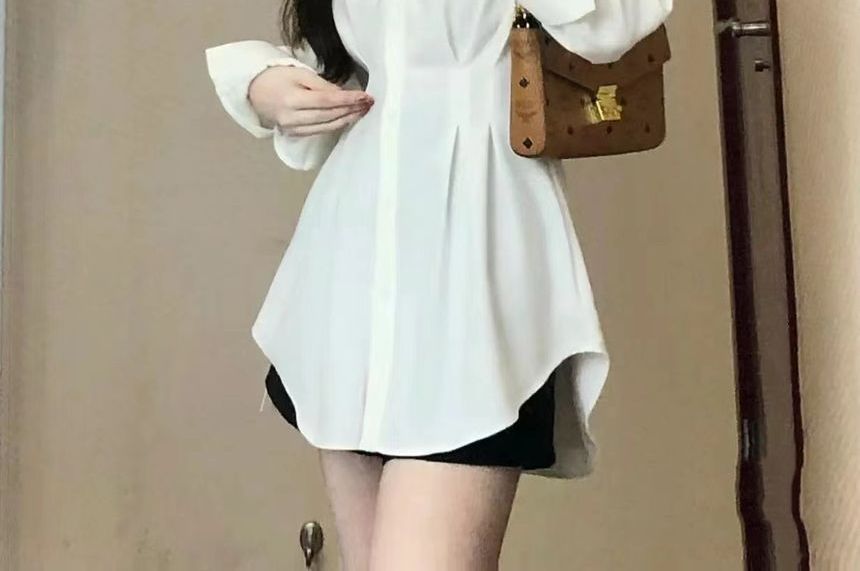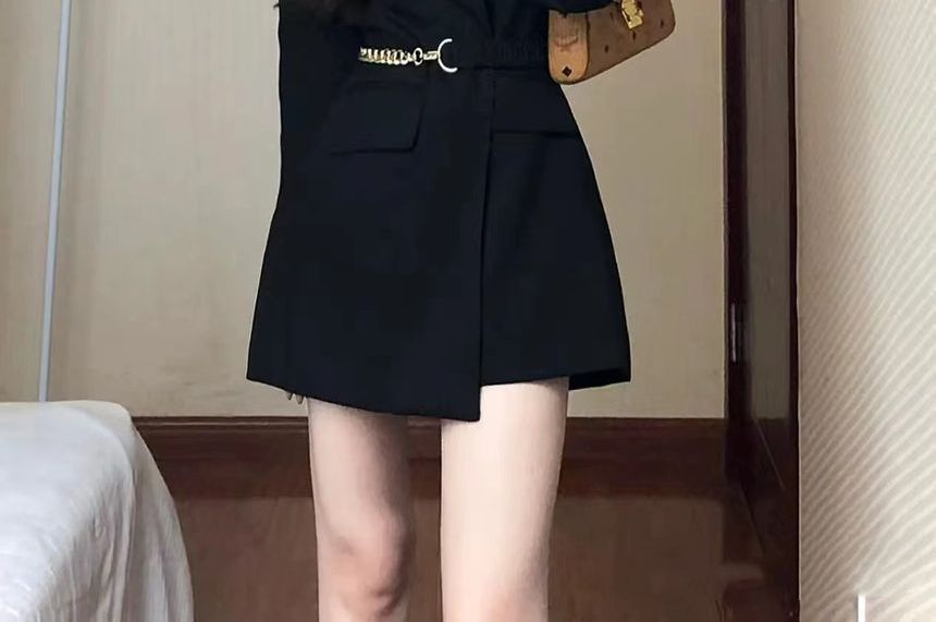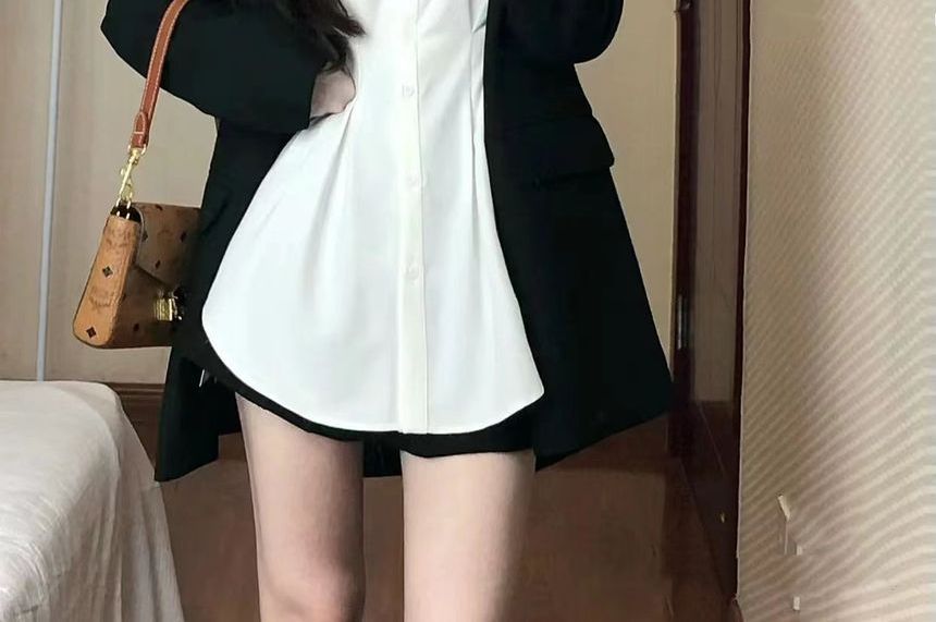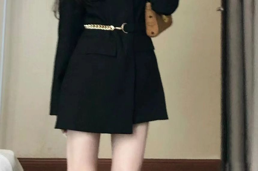 Plain Mini A-Line Blazer Dress / Long-Sleeve Peplum Tunic Shirt