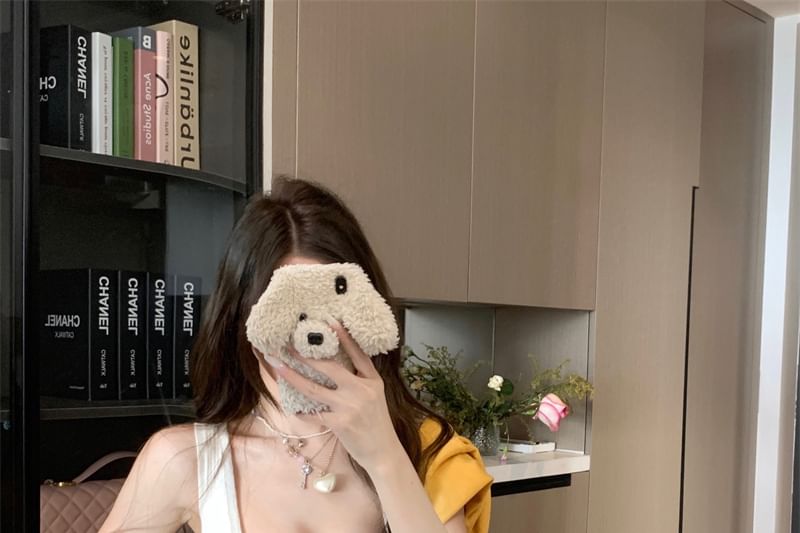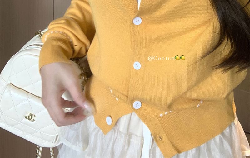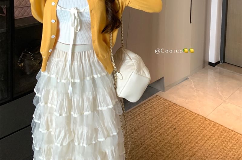 Plain Tie Front Ribbed Crop Knit Tank Top / Round Neck Contrast Stitching Cardigan
