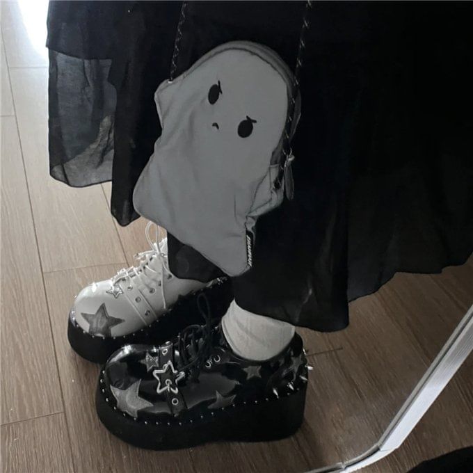 Platform Star Applique Buckled Lace Up Shoes