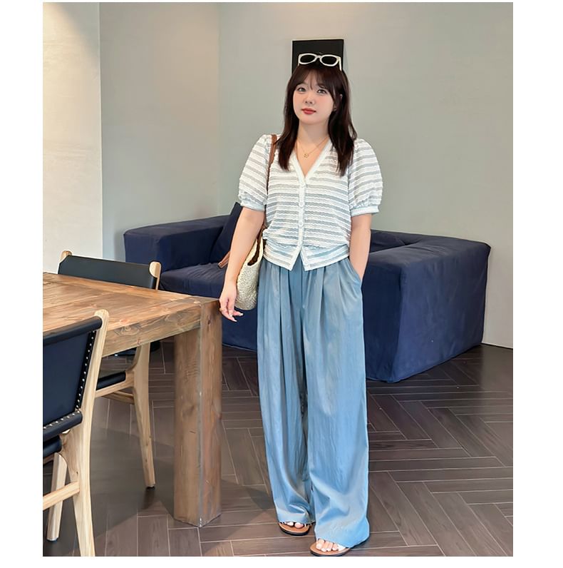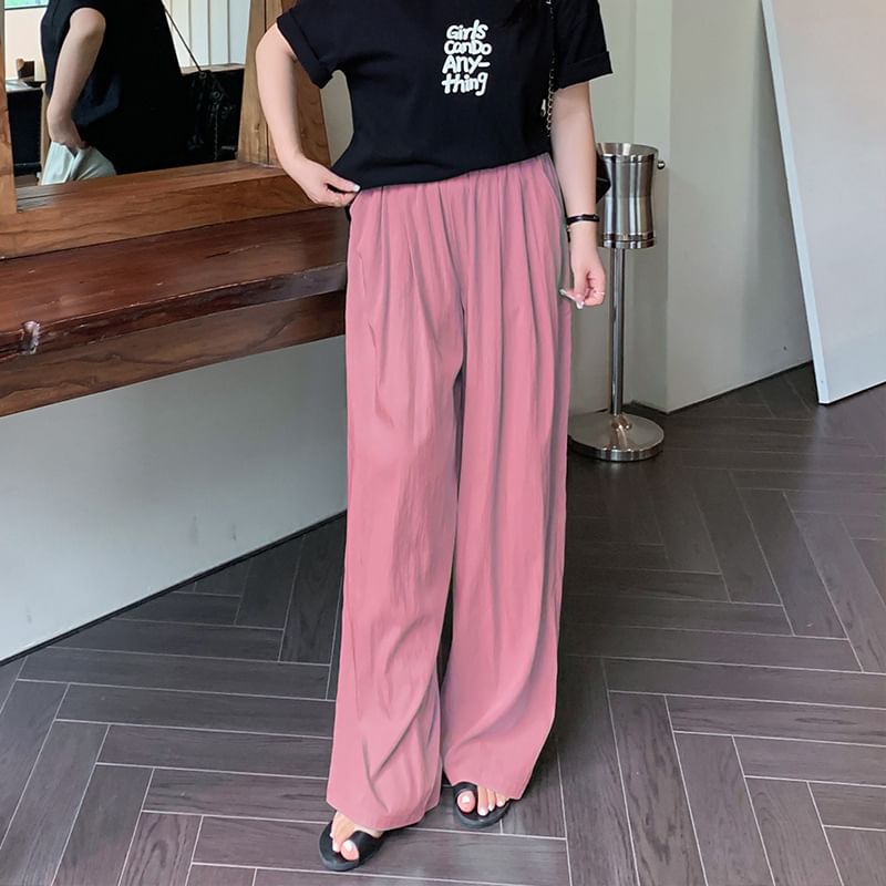 Plus Size High Rise Plain Wide Leg Pants