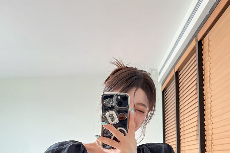 Puff-Sleeve Off Shoulder Plain Crop Blouse