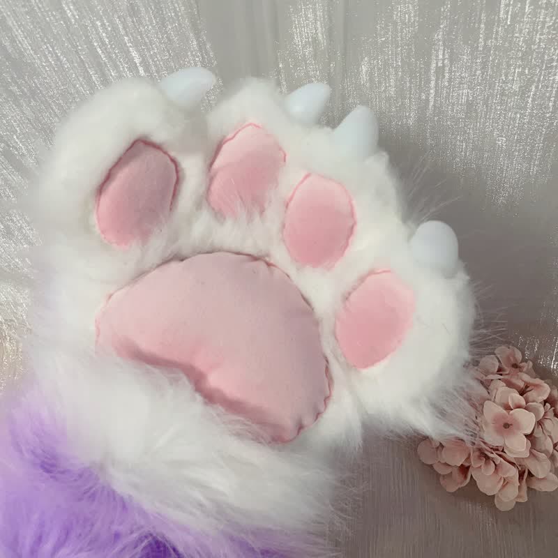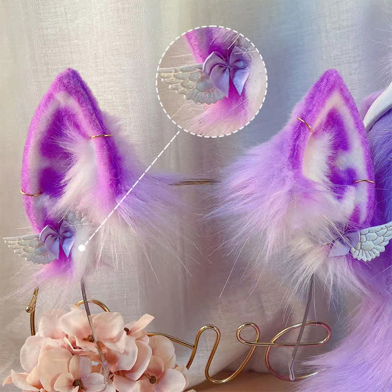 Purple Furry Fox Ears Tail Paw Headband Accessory