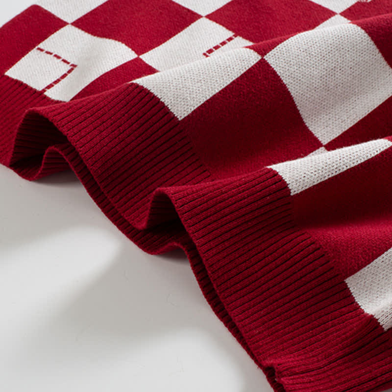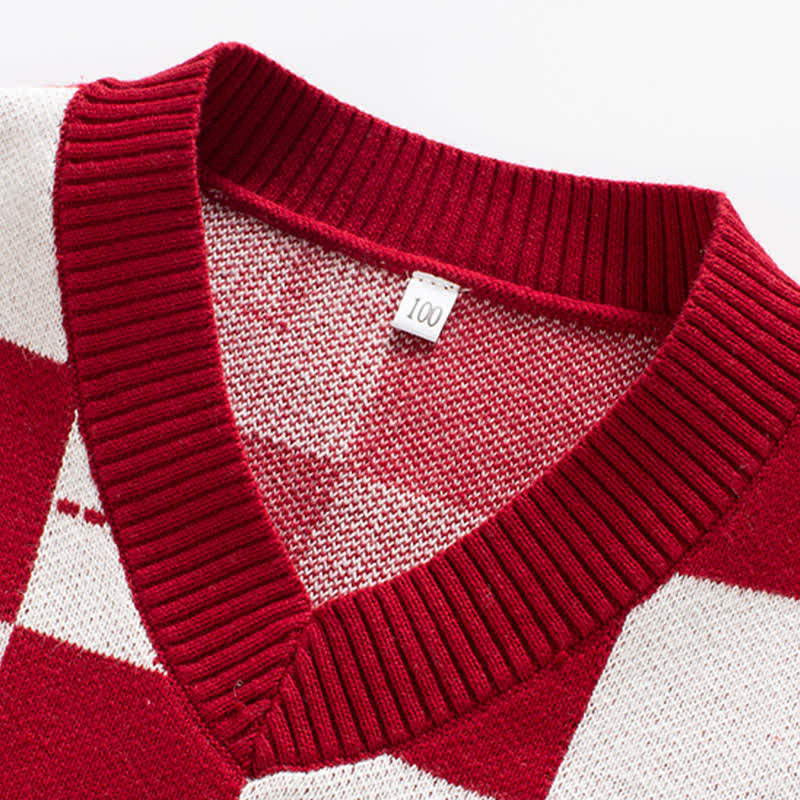 Red Bunny Lattice Print Vest Lapel Pleated Shirt Dress Set