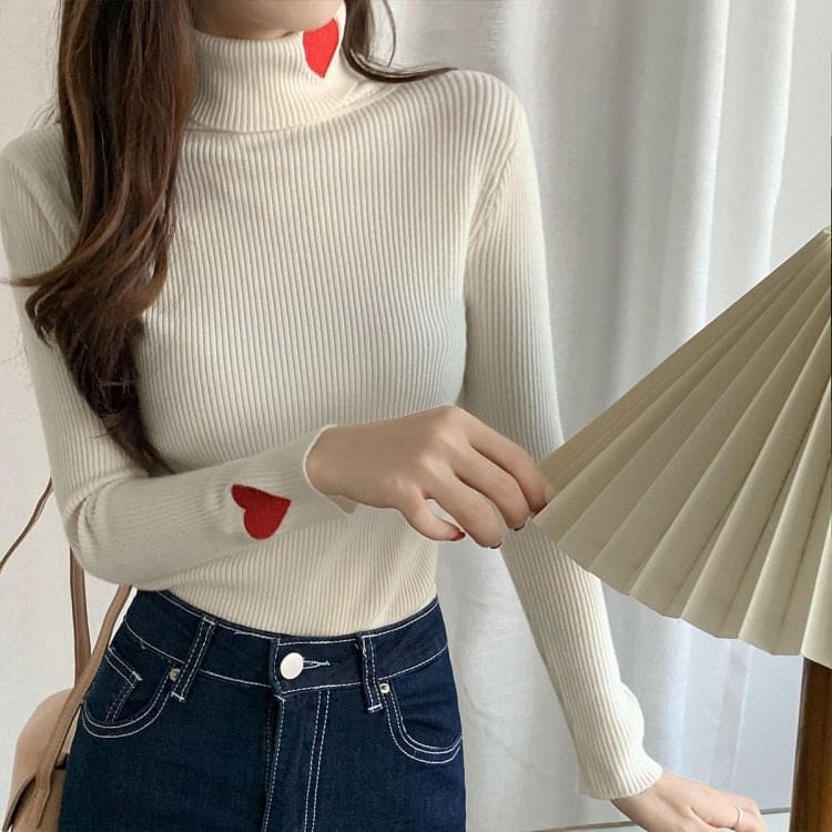 Stay cozy and stylish with our Red Heart Stripe Turtleneck Jumper. The bold red stripes add a touch of playful charm to this comfy turtleneck jumper. Perfect for chilly days, this jumper is sure to keep you warm and looking kawaii.