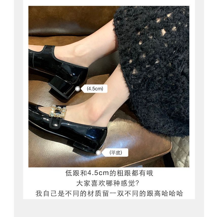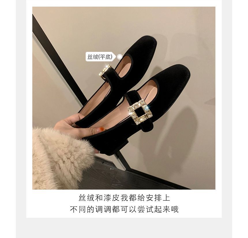 Rhinestone Buckled Velvet Mary Jane Shoes