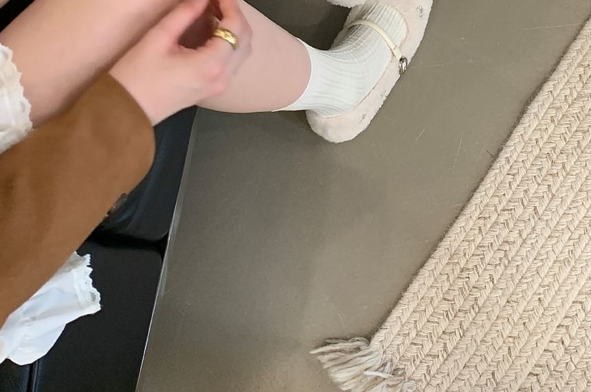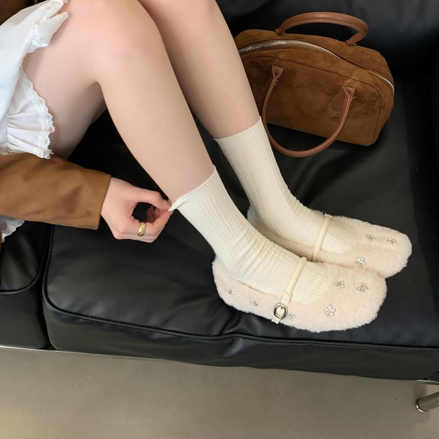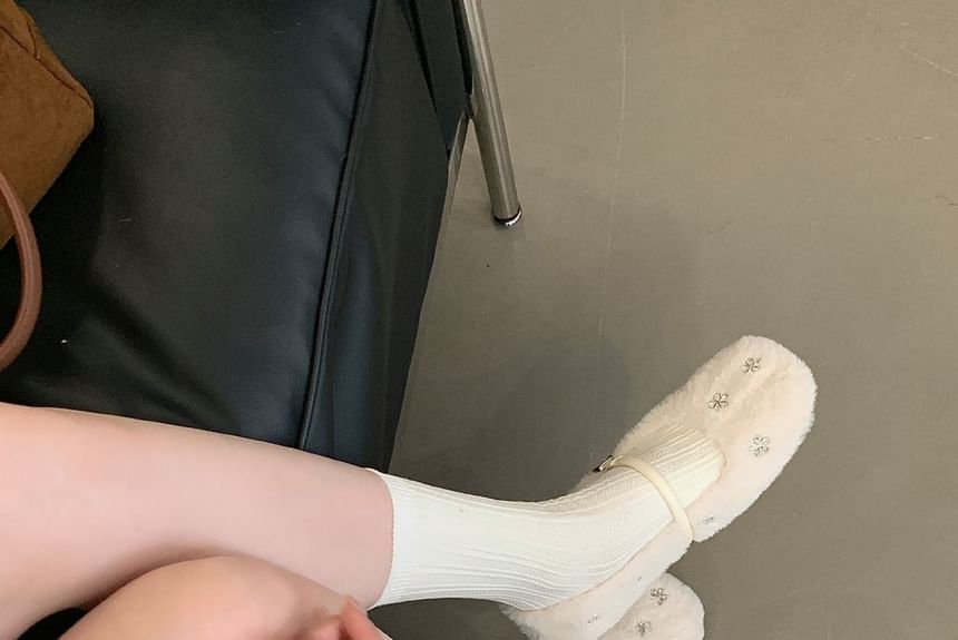 Rhinestone Fleece Mary Jane Flats