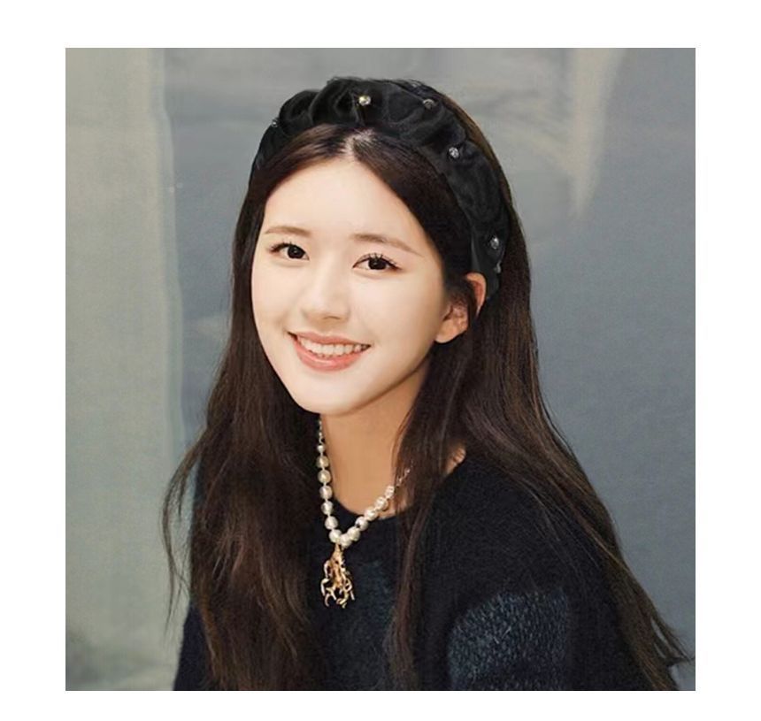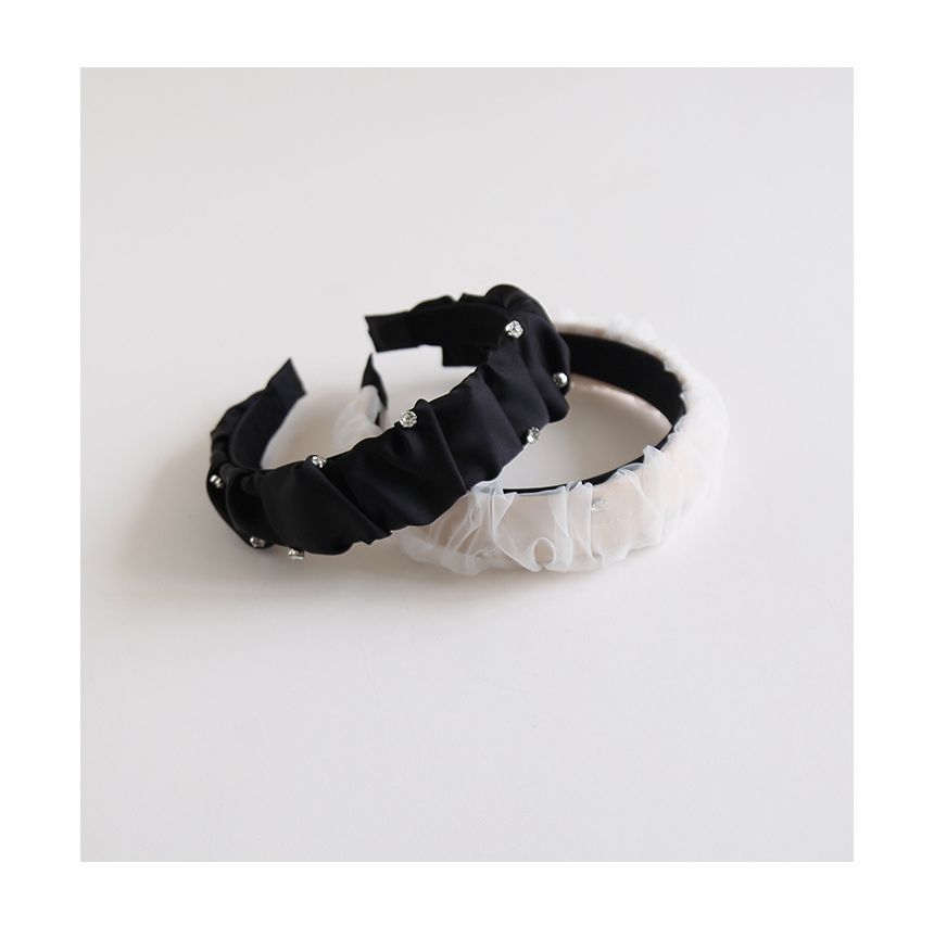 Rhinestone Shirred Mesh Headband