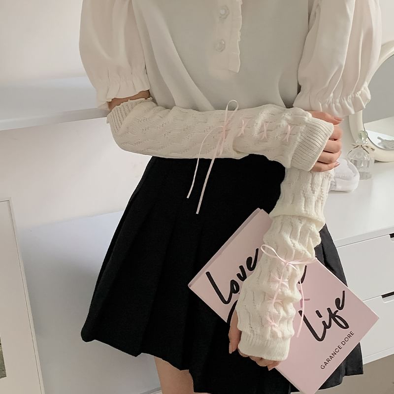 Ribbon Accent Knit Arm Sleeves