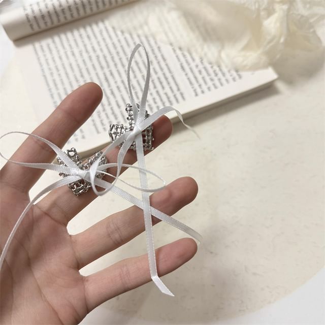 Ribbon Heart Alloy Stud Earring