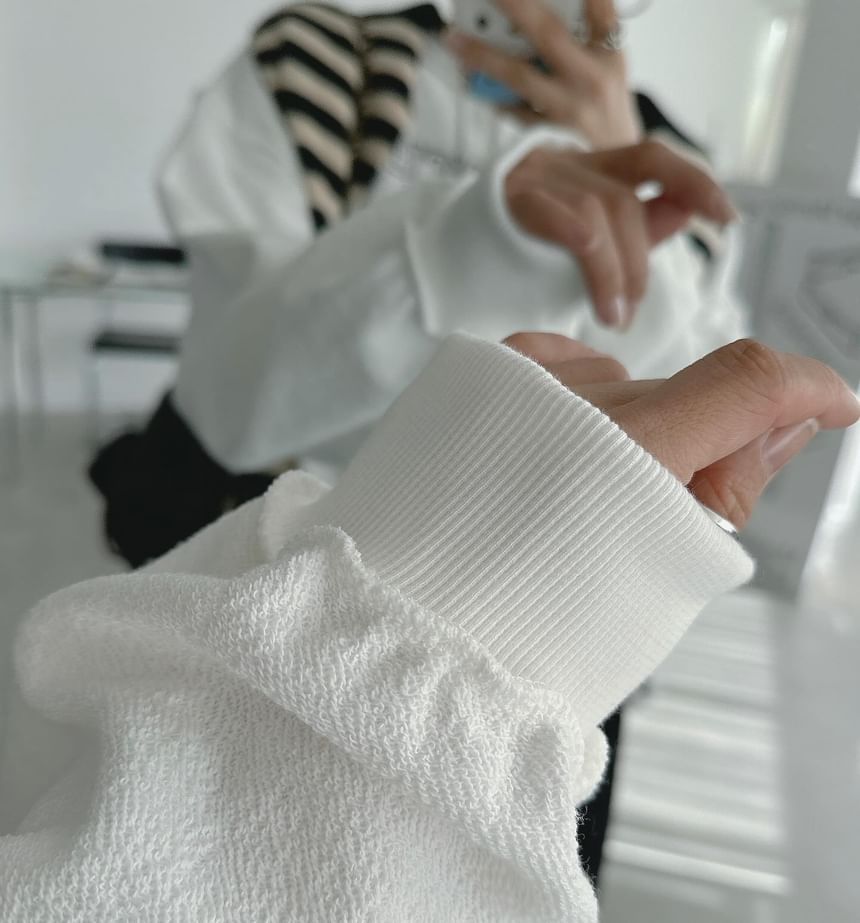 Round Neck Numbering Lettering Print Panel Sweatshirt