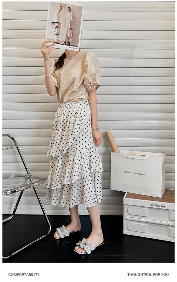 Skirt Waist Print Sweet Pleated High T-Shirt