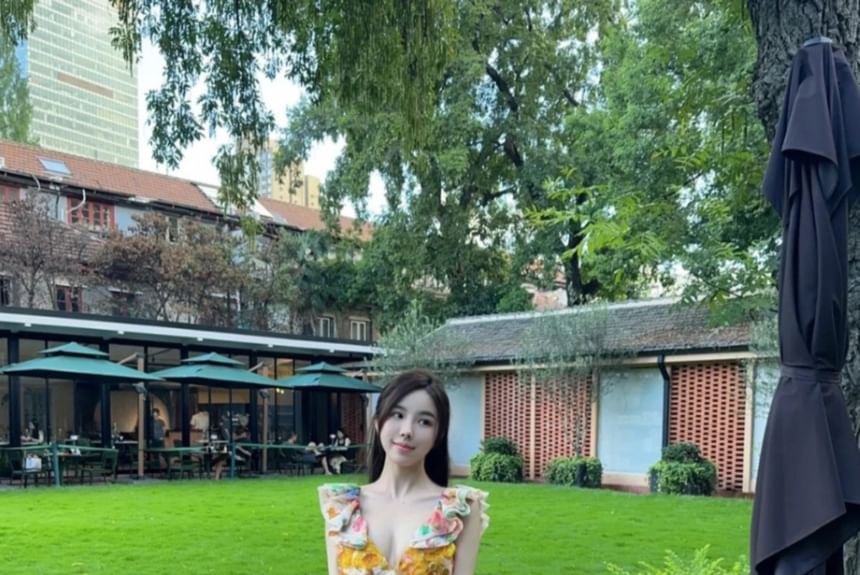 Ruffle Sleeveless V-Neck Floral Print Maxi Sun Dress