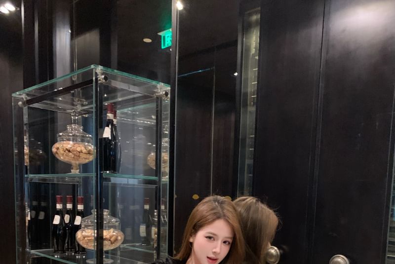 Sequin Faux Leather Panel Mini Bodycon Tube Dress / Plain Fluffy Jacket