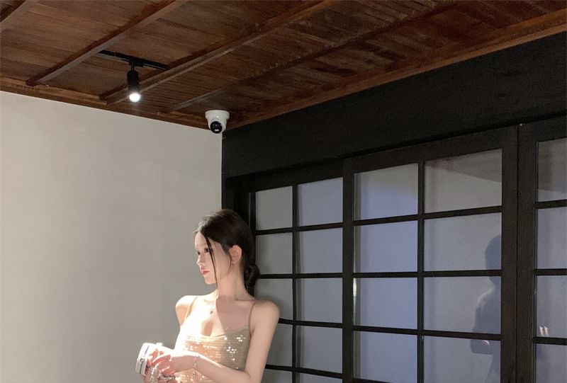 Sequin Spaghetti Strap A-Line Maxi Dress
