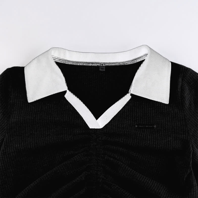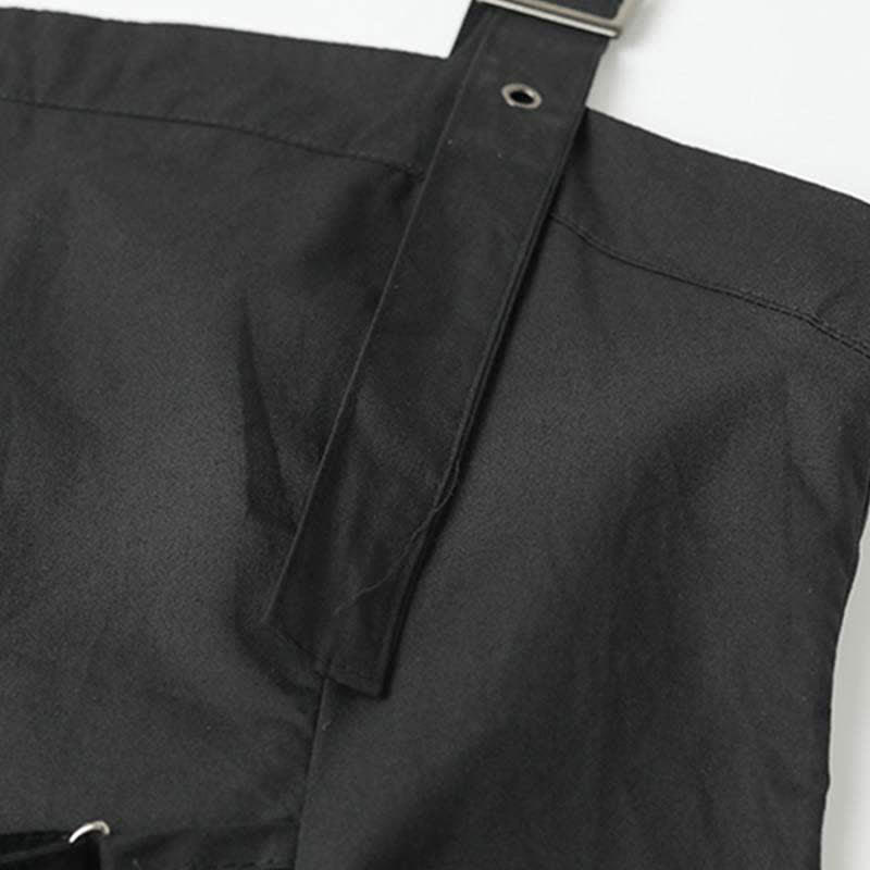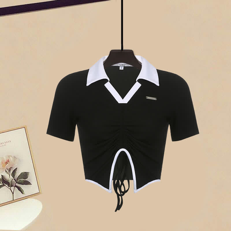 Set Drawstring Crop Slip Black T-Shirt Dress Irregular