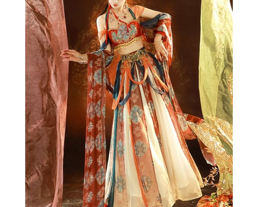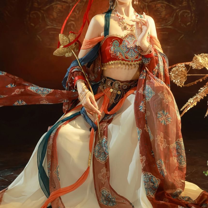 | Color: | Set of 3 - Camisole Top & Skirt & Jacket - Red & Blue & Orange & White - Jacket - One Size / Camisole Top & Skirt |