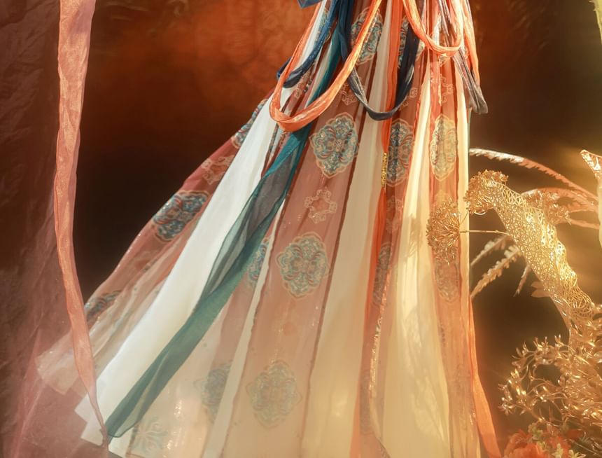 Sleeve Traditional Flower Shirt Long Print Skirt