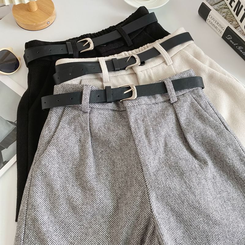 Set: High Waist Plain Shorts + Faux Leather Belt
