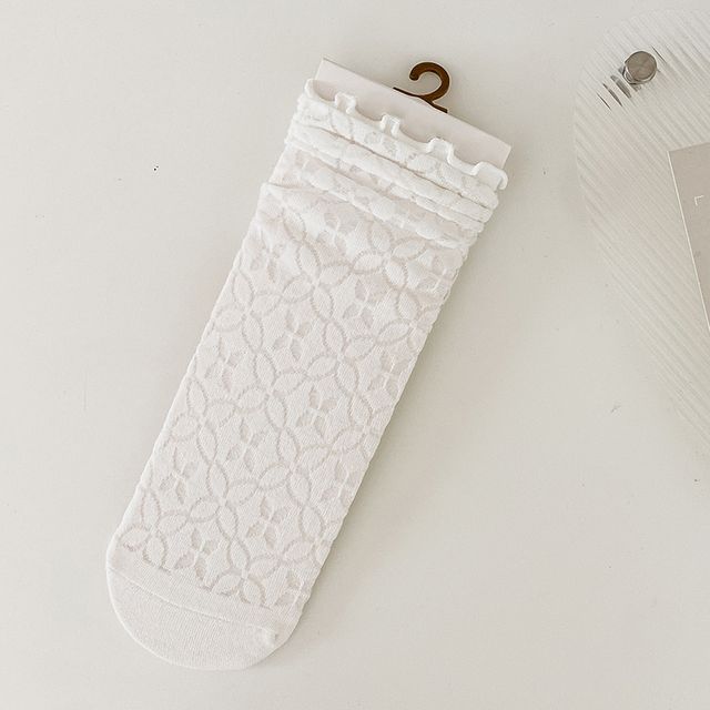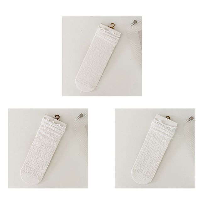 Set of 3 Pairs: Lettuce Edge Pointelle Knit Socks