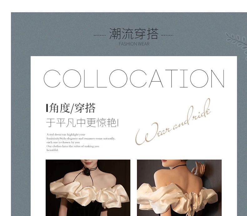 Set: Off-Shoulder Two Tone Ruffle Velvet Mermaid Evening Gown + Floral Choker