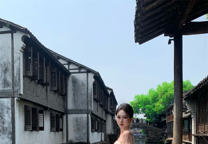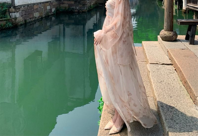 Set: Spaghetti Strap Floral Hanfu Maxi A