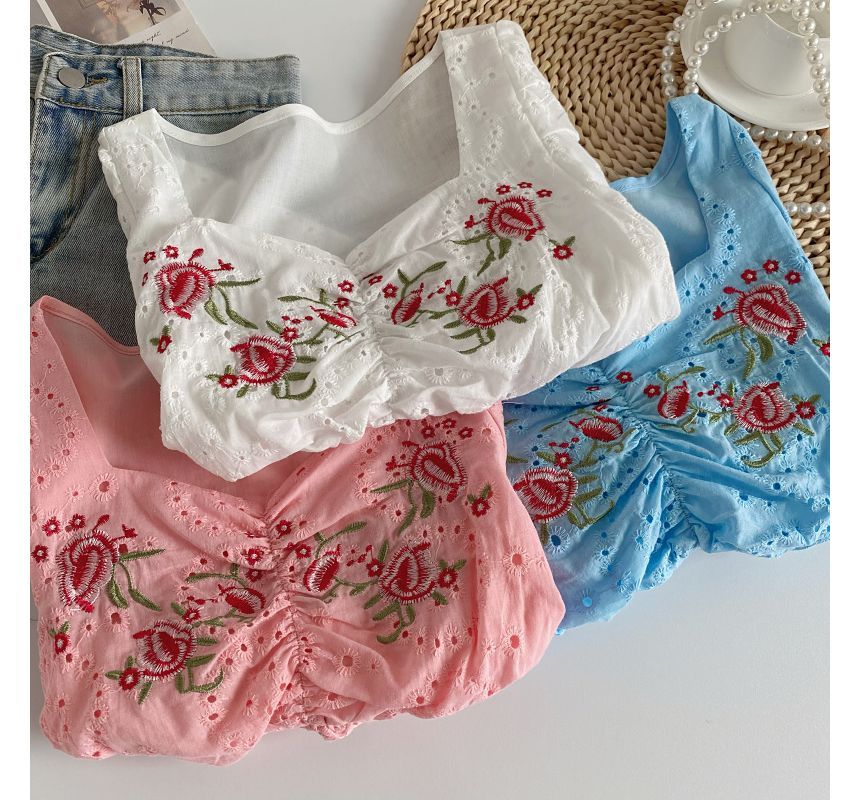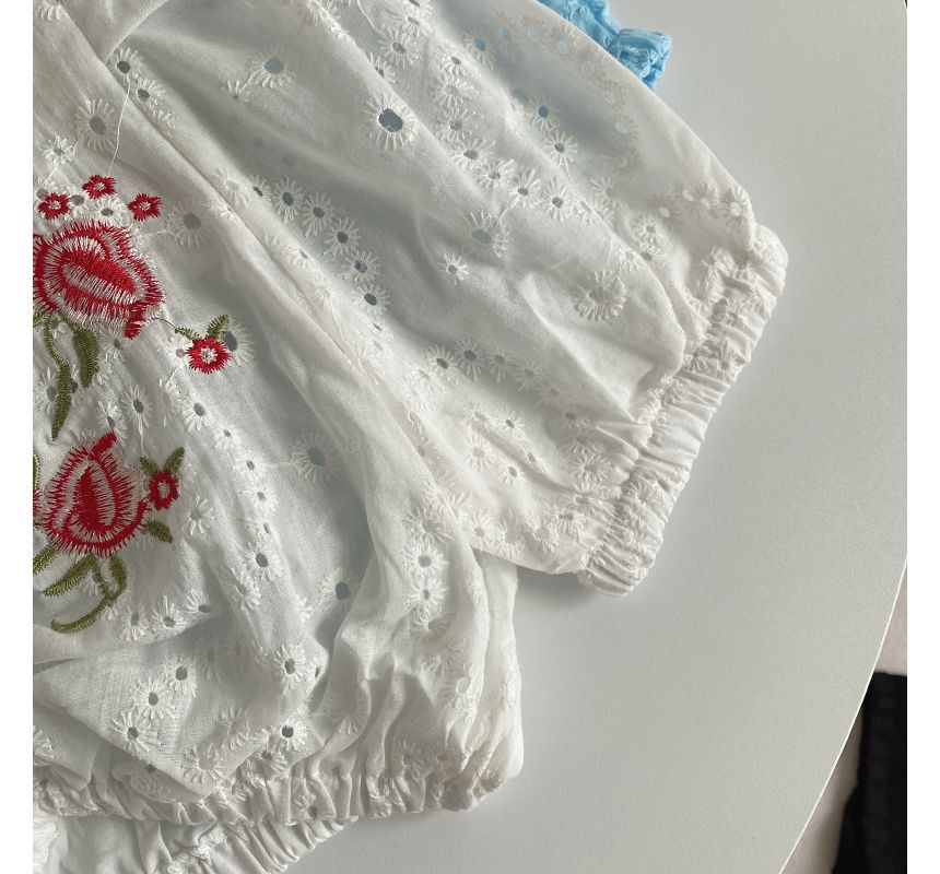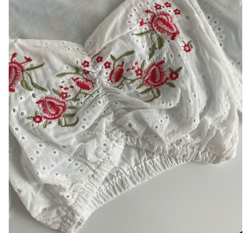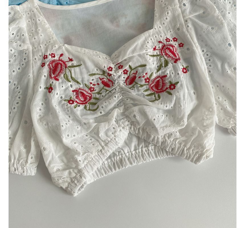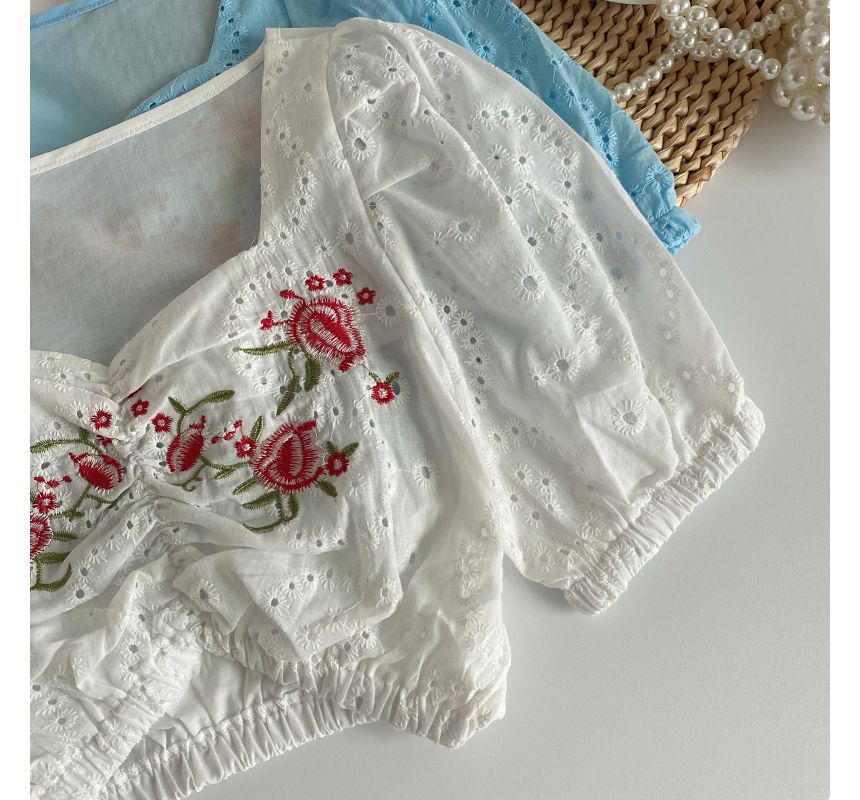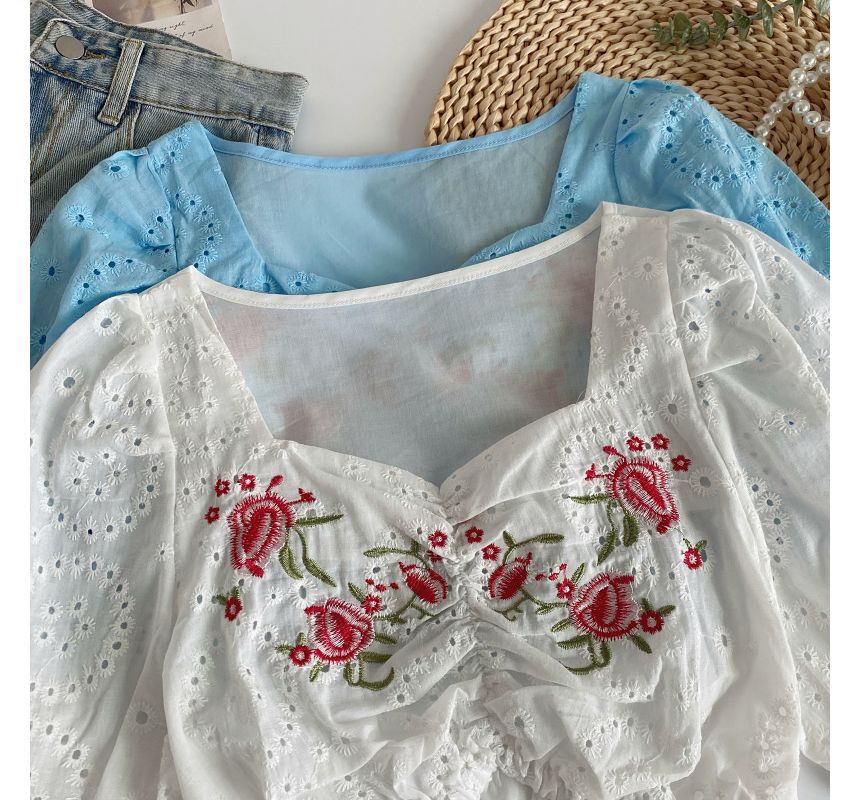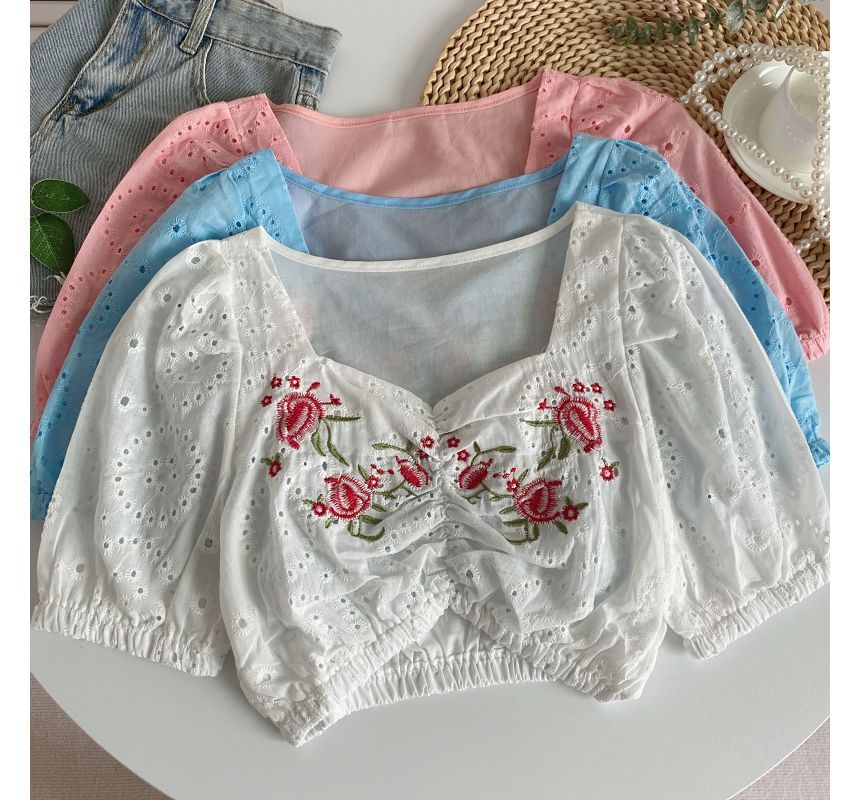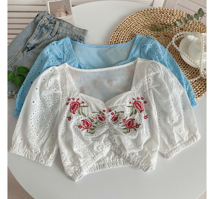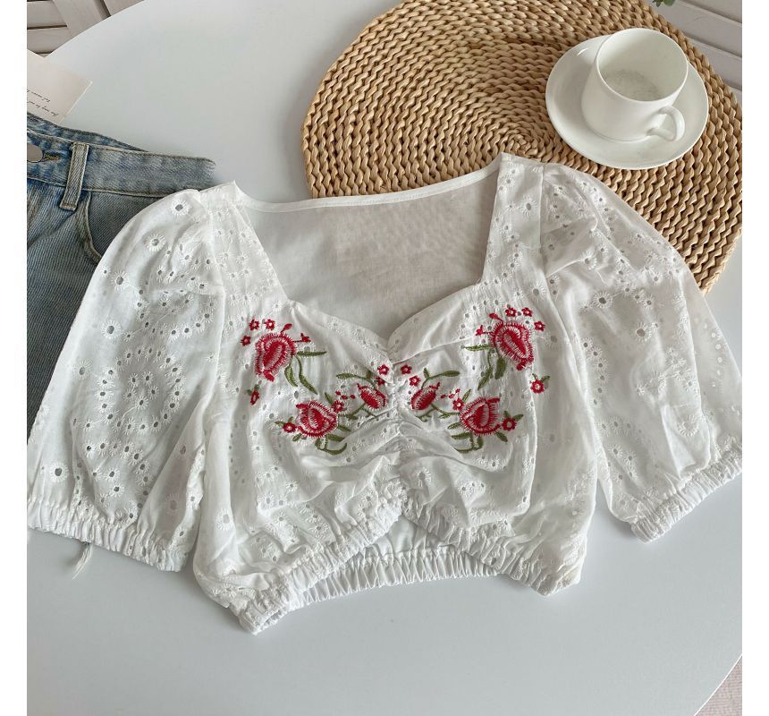 Short-Sleeve Embroidered Crop Tunic