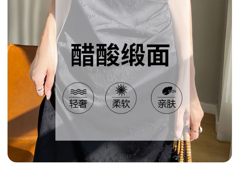 Short-Sleeve Floral Jacquard Keyhole Midi A-Line Dress