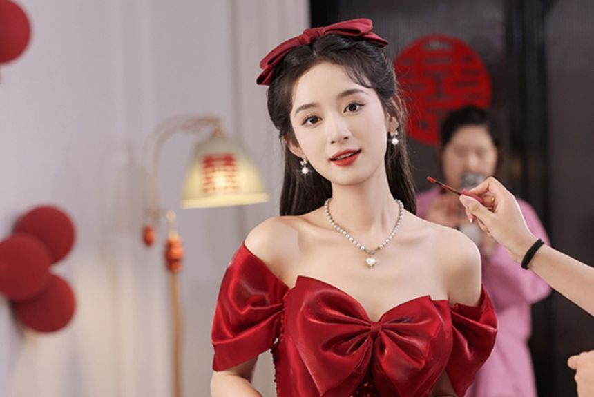 Short-Sleeve Off-Shoulder Plain Sequin Bow Accent A-Line Evening Gown