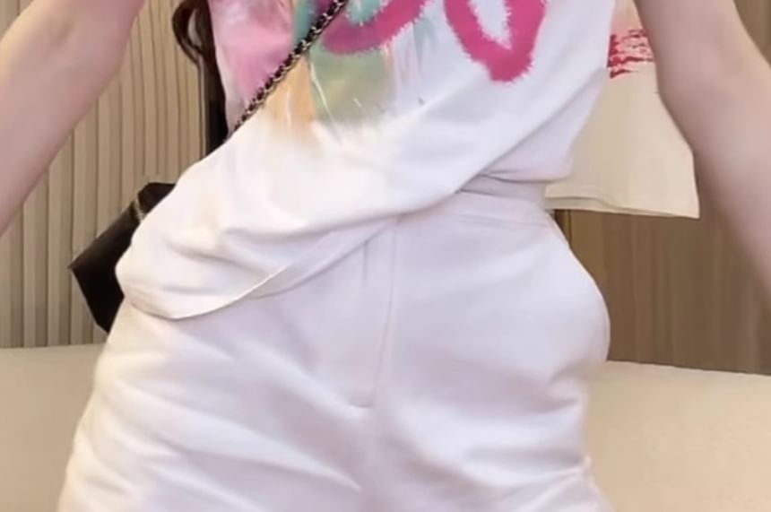 Skirt Waist Print Sweet Pleated High T-Shirt