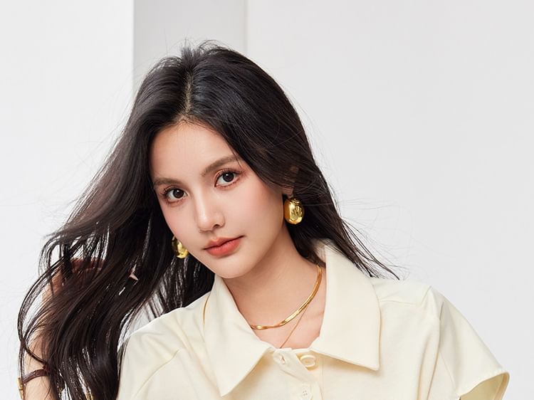 Short Sleeve Solid Color Pocket Loose Polo Shirt