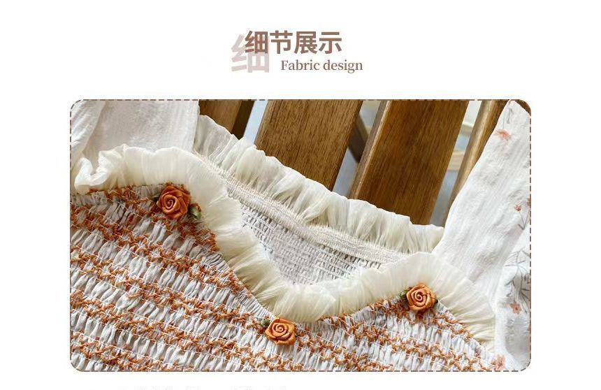 Short Sleeve Square Neck Floral Print Shirred Frill Panel Maxi A-Line Dress