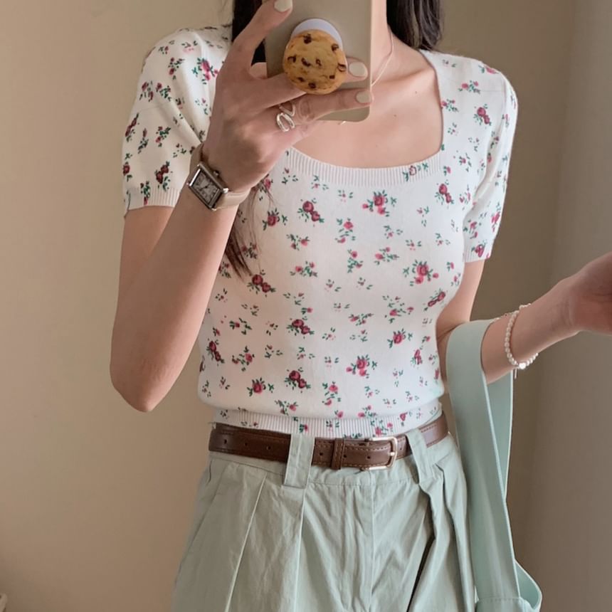 Skirt Waist Print Sweet Pleated High T-Shirt