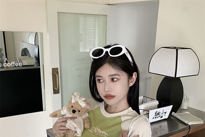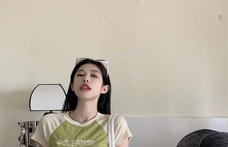 Short-Sleeve Crew Neck Letter Embroidered Cropped T-Shirt