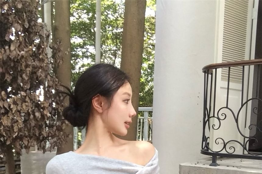 Short-Sleeve Off-Shoulder Twist Slim Fit T-Shirt