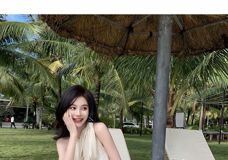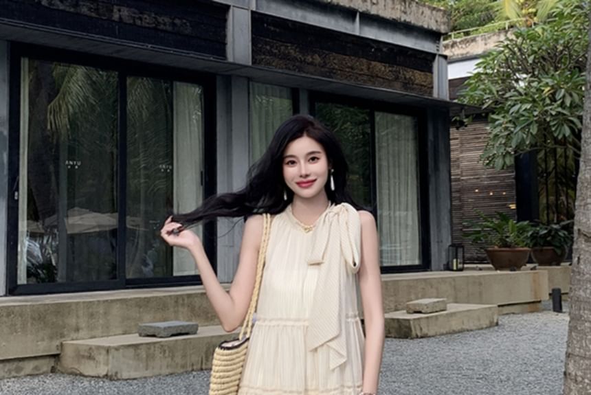 Sleeveless Crewneck Plain Maxi A-Line Dress