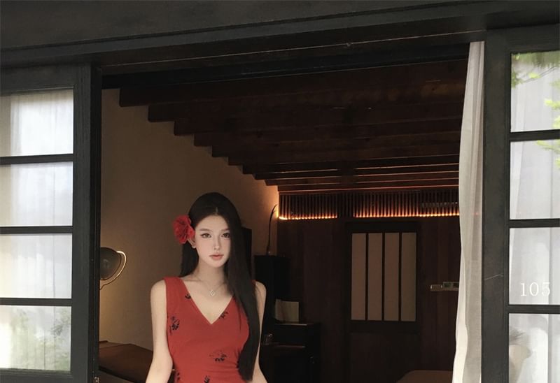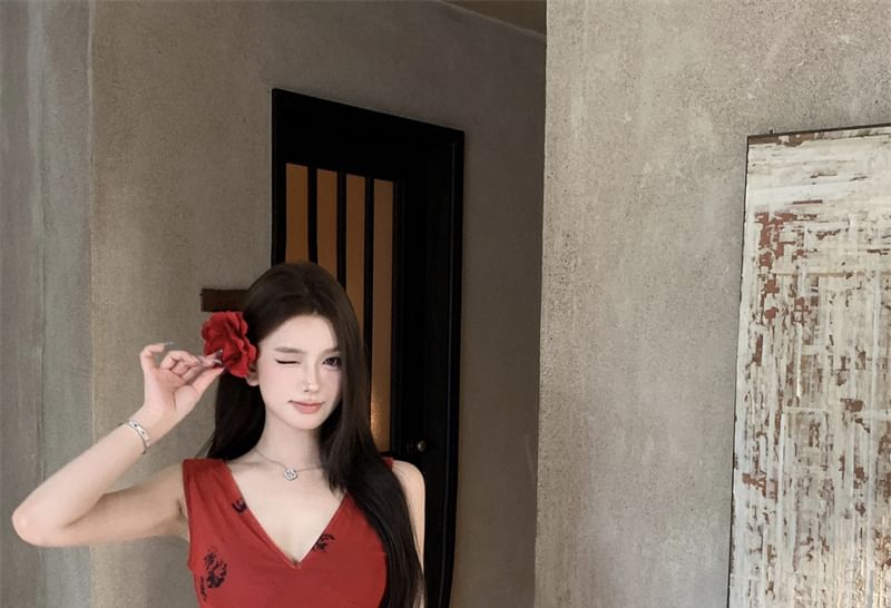Sleeveless Print Midi Bodycon Dress