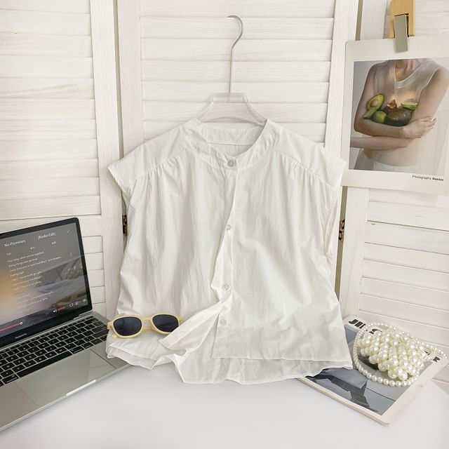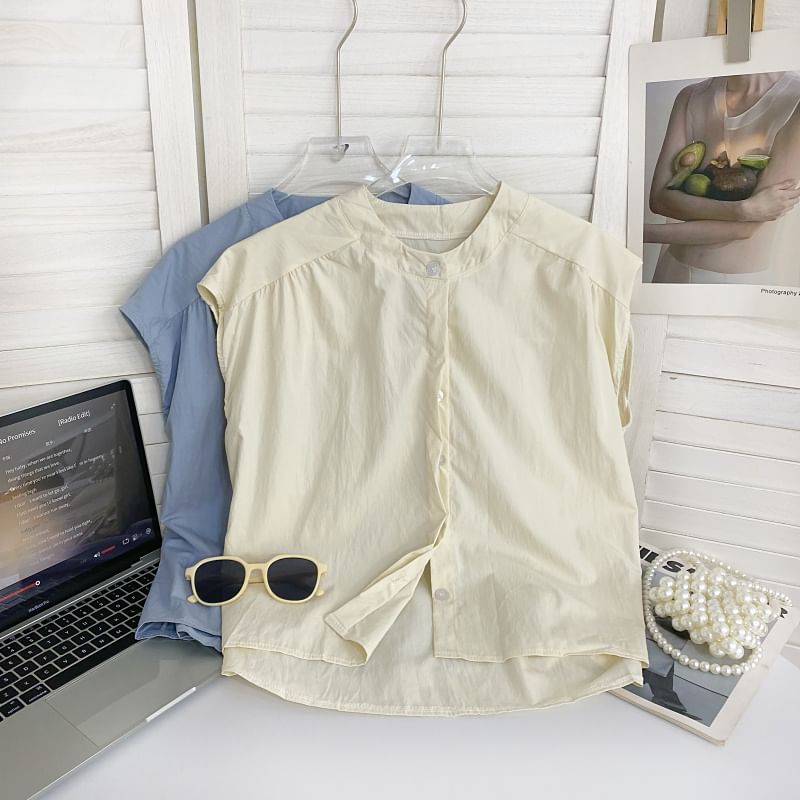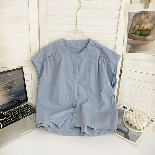 Sleeveless Round Neck Plain Shirt