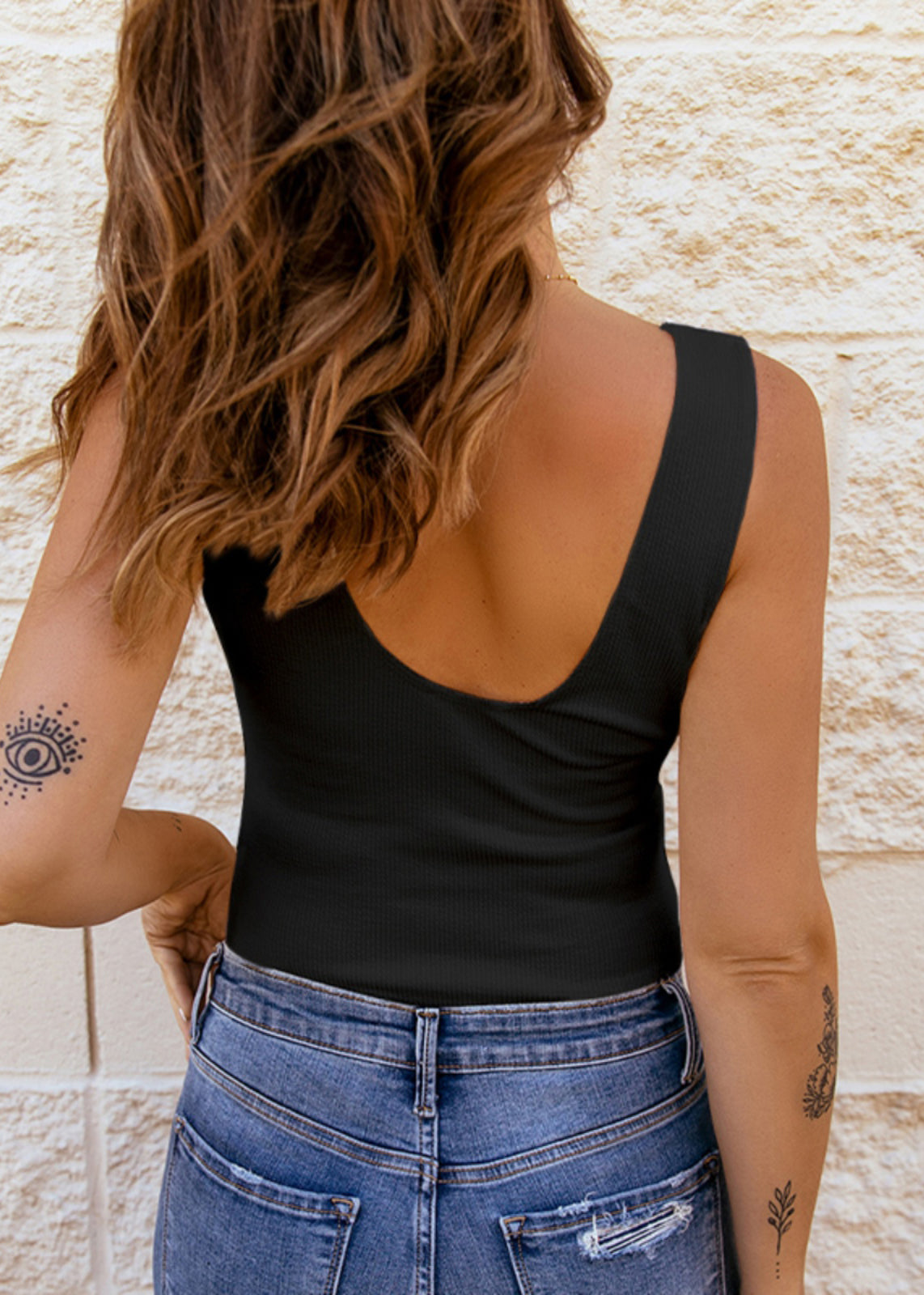 Sleeveless V Black Neck Tank Slim Fit Lace Patchwork
