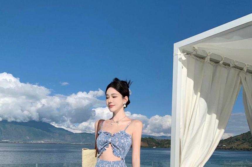 Spaghetti Strap Floral Cutout Maxi Sundress