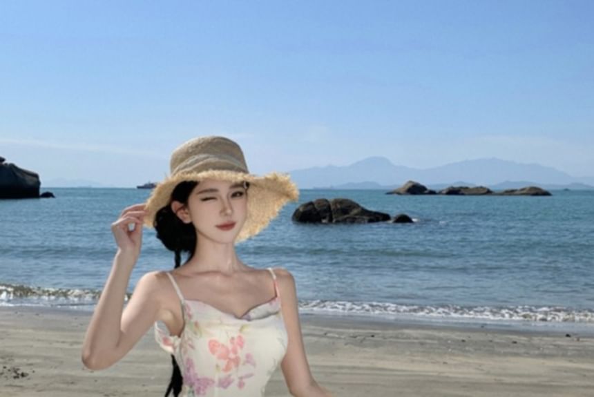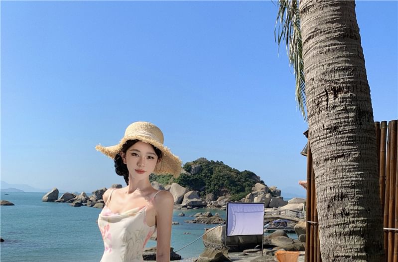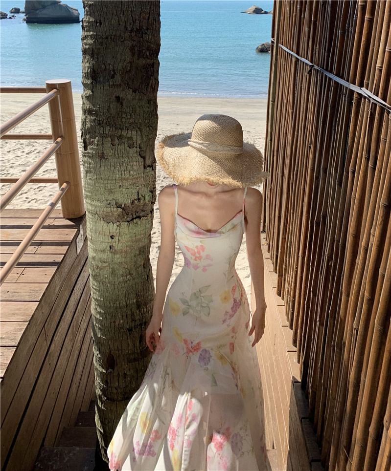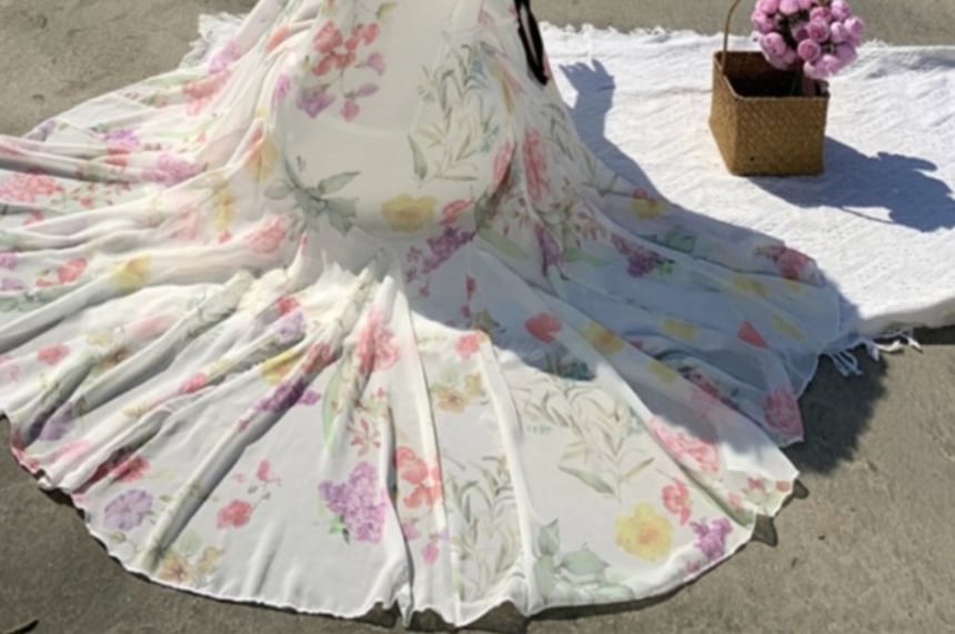 Spaghetti Strap Floral Print Maxi Sheath Dress