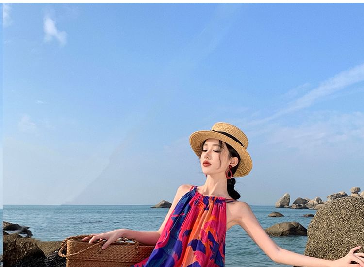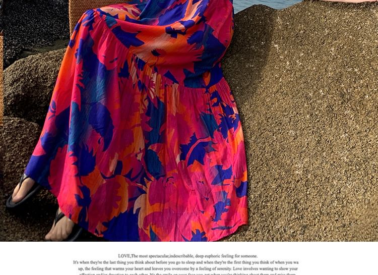 Spaghetti Strap Floral Print Shirred Midi Sundress