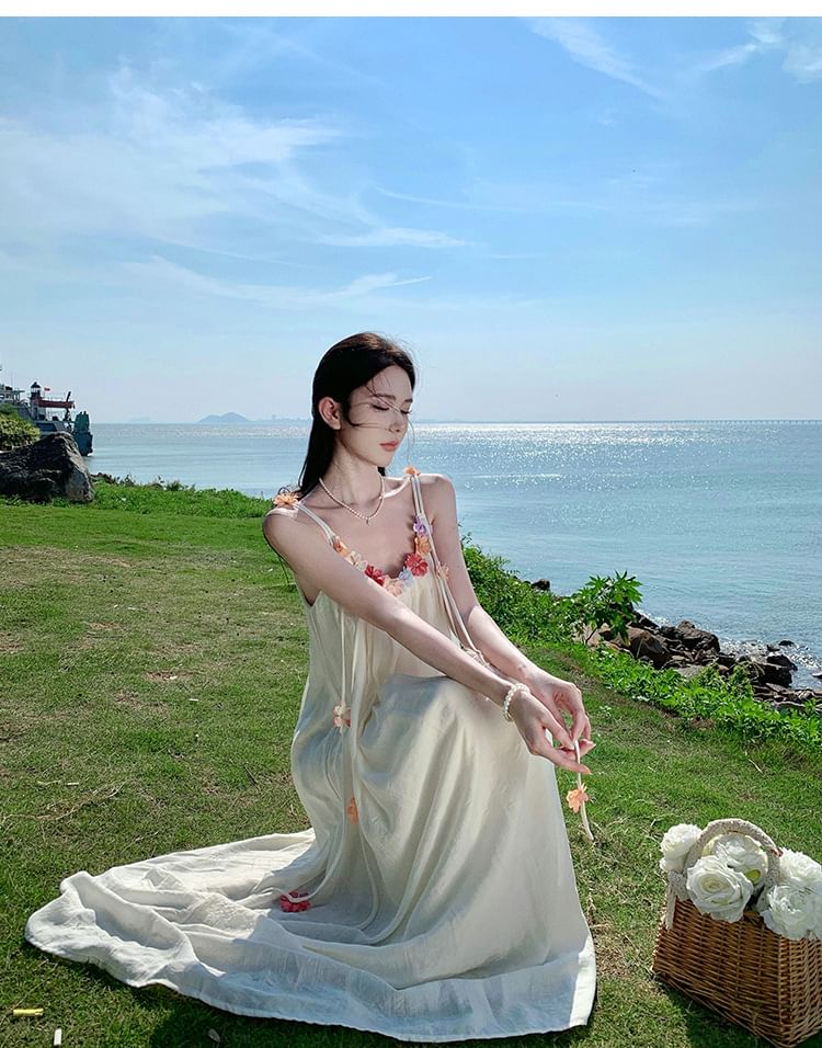 Spaghetti Strap Flower Accent Midi A-Line Dress