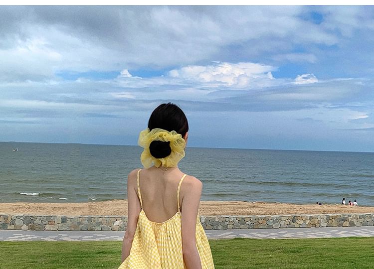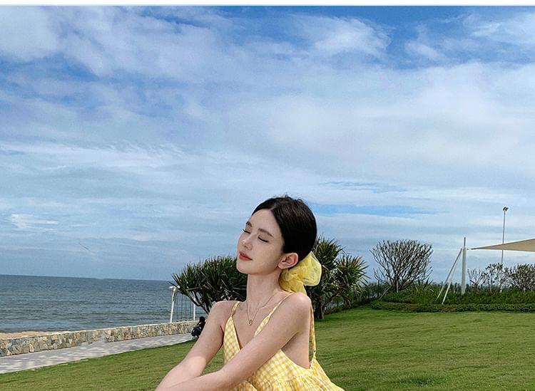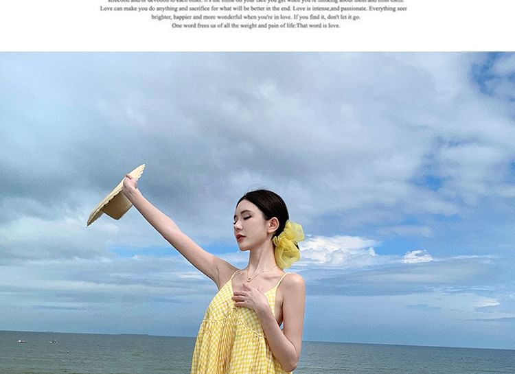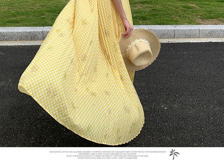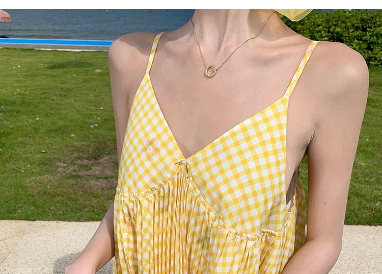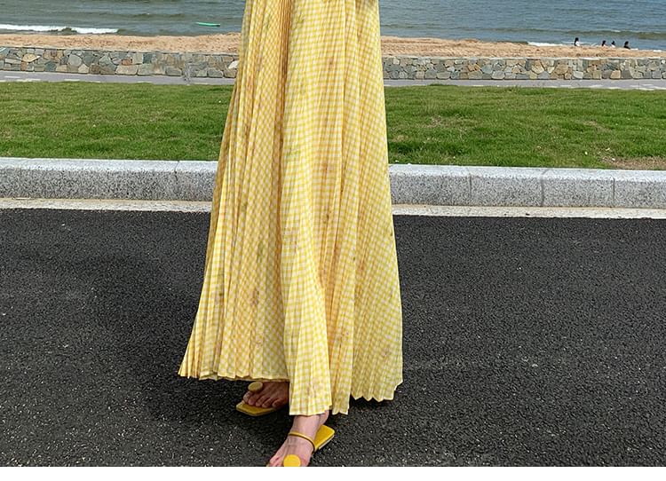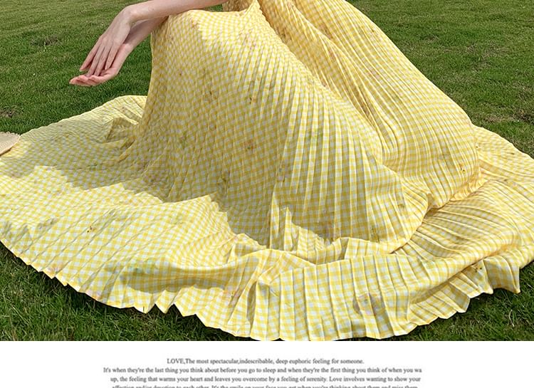 Spaghetti Strap Plaid Accordion Pleated Maxi A