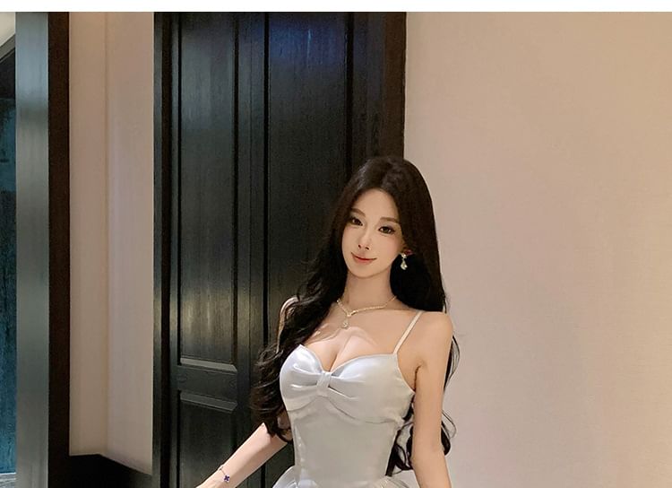 Spaghetti Strap Plain Tiered A-Line Evening Dress