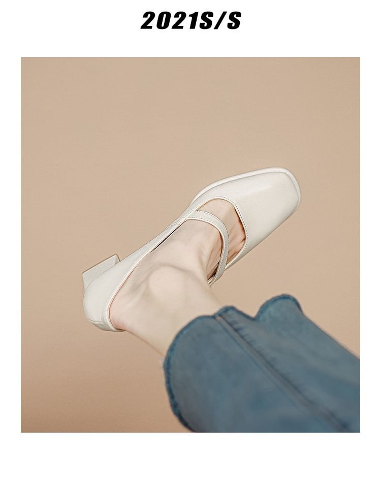 Square Toe Faux Pearl Chunky Heel Mary Jane Pumps