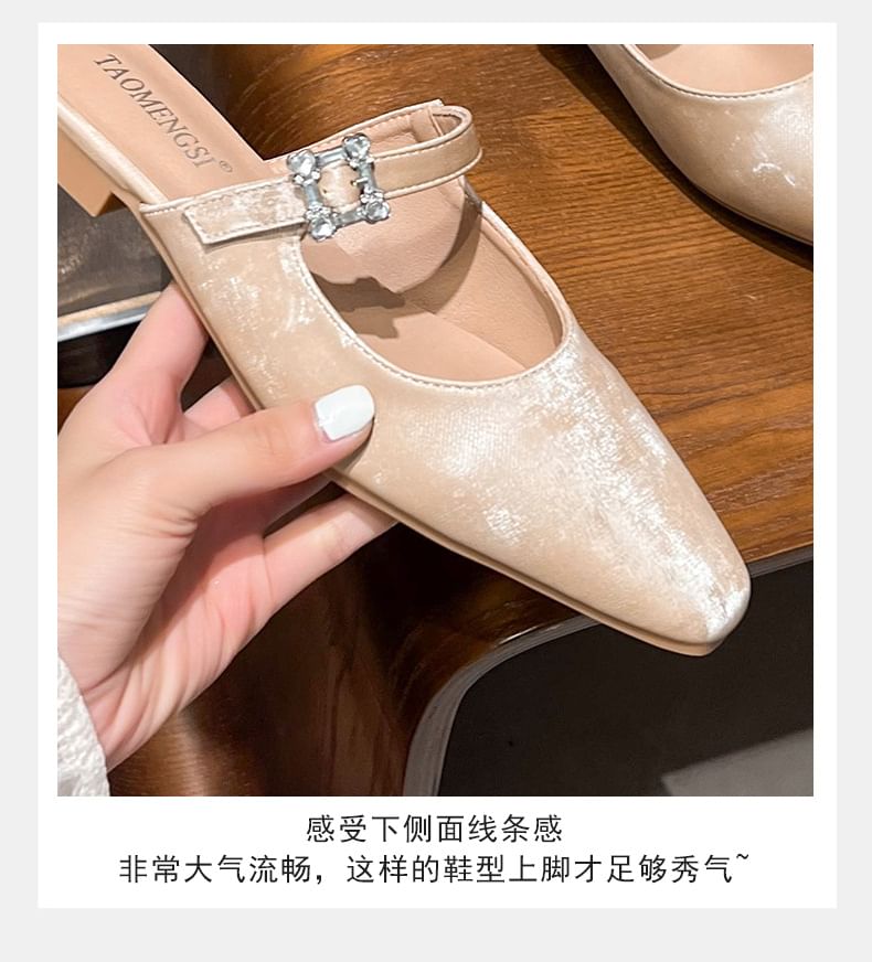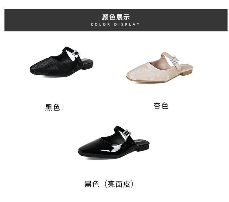 Square Toe Rhinestone Buckle Mules